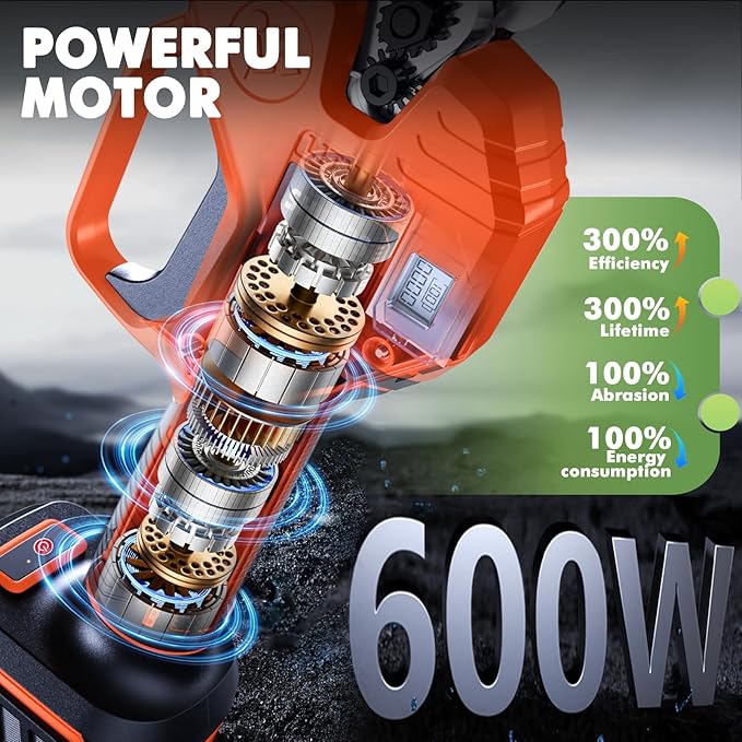 - 【Highly Effective Pruning】Powered by a 600W brushless motor and running at 21,000 RPM, these power shears deliver strong cutting power to easily tackle thick branches. The efficient motor design reduces runtime and energy use, helping you cover more ground. Compared to traditional brushed motors, this one requires less maintenance and lasts longer, offering reliable performance for garden lovers