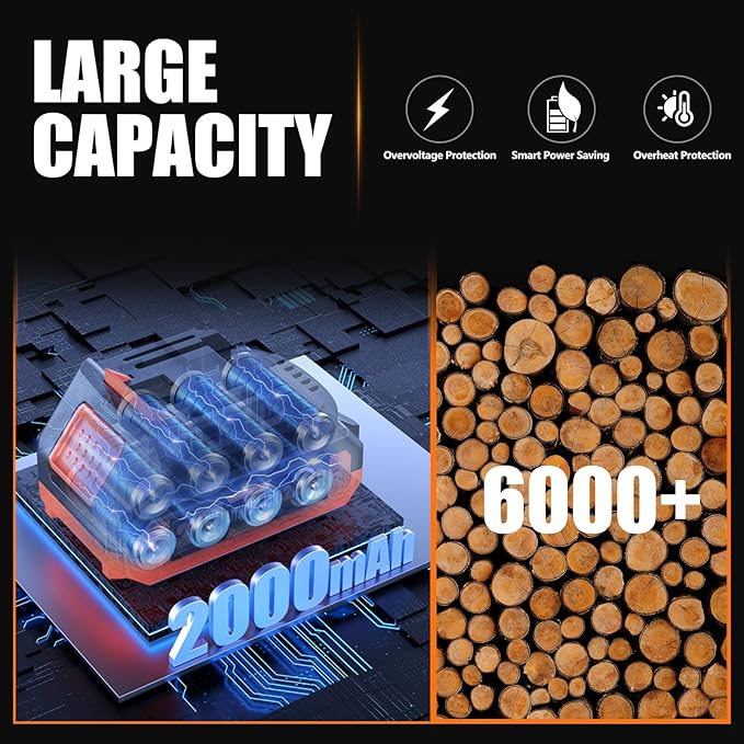- 【Long-Lasting Power】The electric pruner is equipped with 2000mAh high-capacity lithium batteries, offering a fast 2 hour charge time and up to 3–4 hours of runtime. The dual battery system allows for seamless switching, ensuring uninterrupted operation and making it easy to tackle large pruning jobs