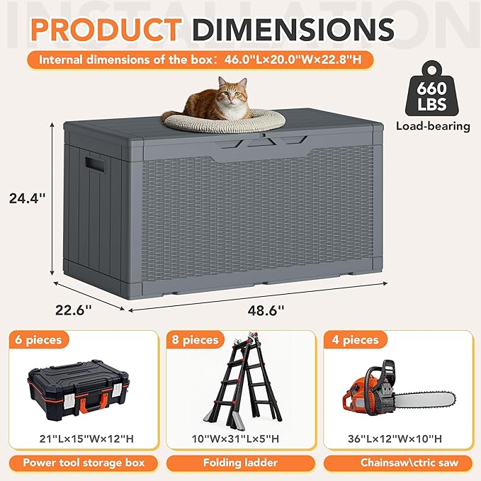 - Spacious & Organized Storage – This 105-gallon outdoor storage box offers ample space to store patio cushions, garden tools, pool accessories, and more, keeping your outdoor areas tidy and clutter-free