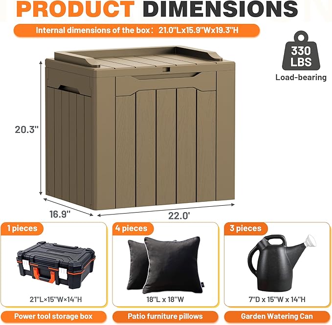 - Spacious & Organized Storage – This 32-gallon outdoor storage box offers ample space to store patio cushions, garden tools, pool accessories, and more, keeping your outdoor areas tidy and clutter-free