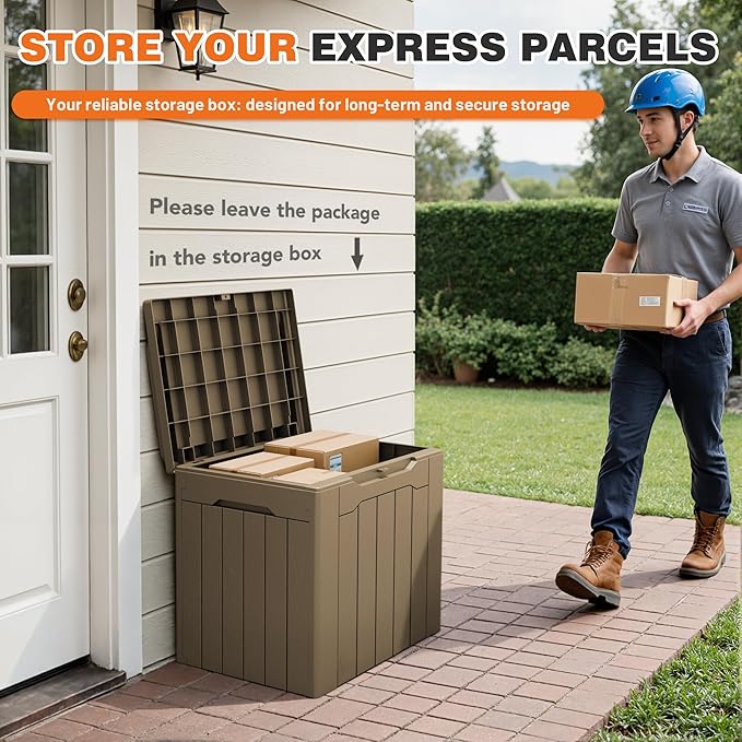 - Elegant & Functional Design – With a modern textured finish and neutral color, this outdoor storage box blends seamlessly with your exterior décor while providing practical storage