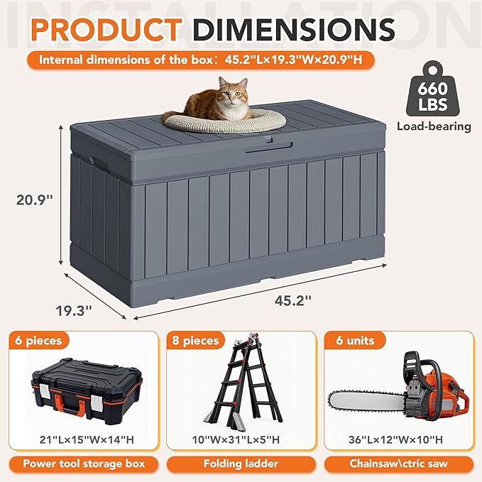 - Spacious & Organized Storage – This 78-gallon outdoor storage box offers ample space to store patio cushions, garden tools, pool accessories, and more, keeping your outdoor areas tidy and clutter-free