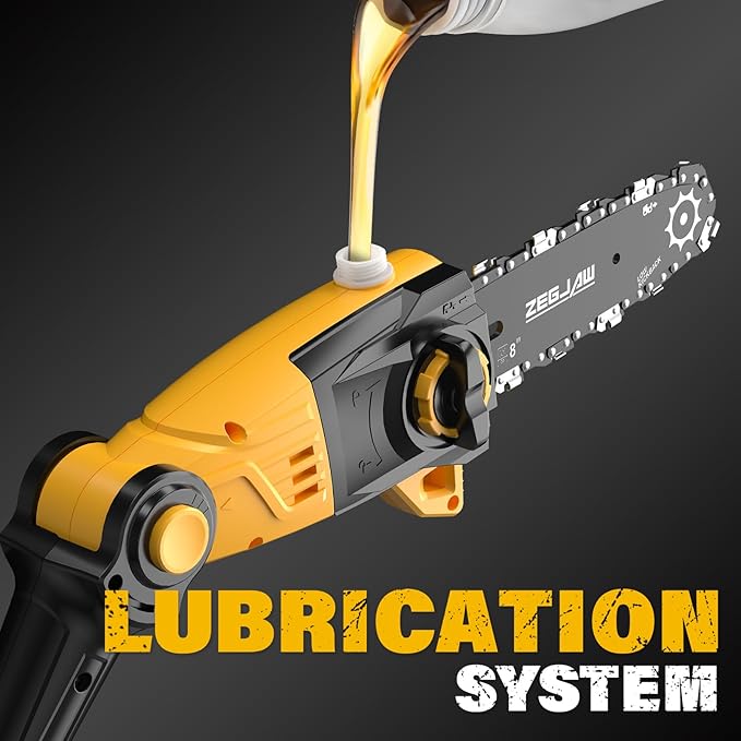 - AUTO OILING & TOOL-LESS CHAIN TENSIONER: Designed for tool-less chain adjustment and emission-free operation. Adjust the chain tension according to your work without using tools. Meanwhile, the automatic oil filling of the oil pot ensures the chain runs perfectly at 16FT/S and also prolongs the chain's life.