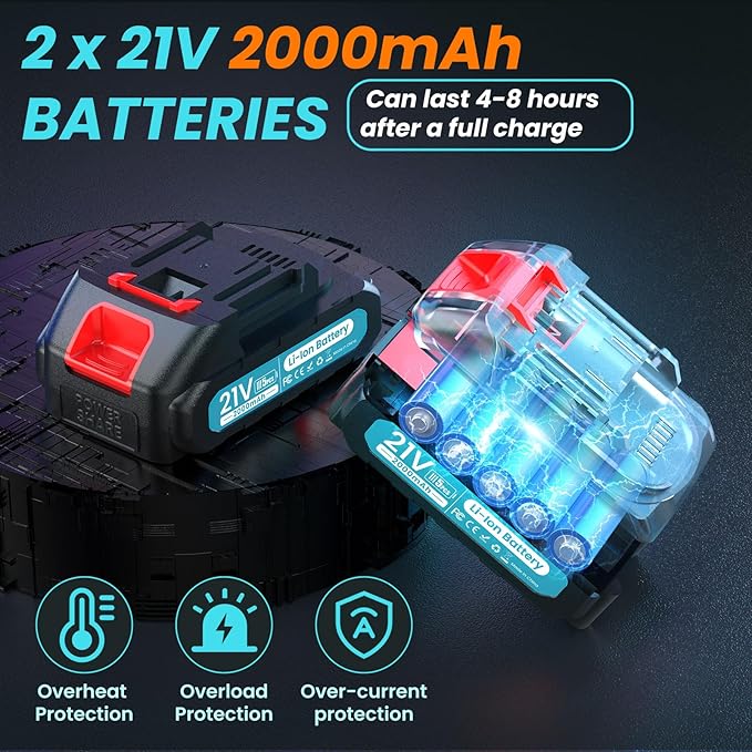 - ✅High-Performance Battery: This electric pruning shear includes two high-energy-density 2000mAh batteries, allowing for over 2,400 cuts (2 x 1200). It is designed to handle even high-intensity, continuous work with ease.