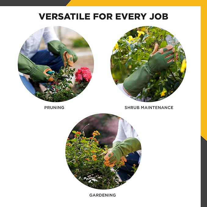 - THORN PROOF PROTECTION – Keep your hands safe with puncture-resistant genuine grain leather palms, perfect for rose gardening, pruning, and handling thorny plants like cactus or brambles.