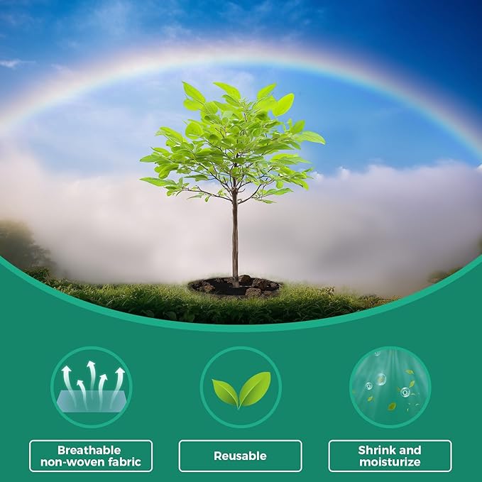 - Superior Weed Control & Soil Protection:Effectively block invasive weeds and stabilize soil temperature with thick non-woven tree mulch rings. The protective layer prevents nutrient loss while acting as a physical barrier against garden tools and animal digging, ensuring your plants thrive weed-free.
