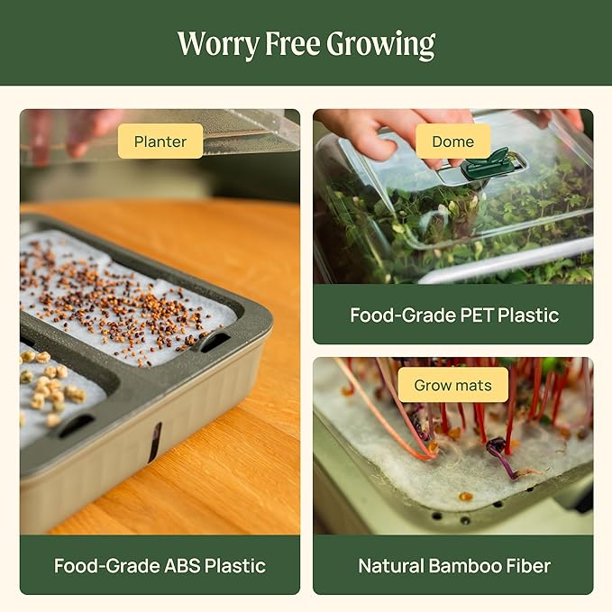 - Generous Capacity, Multiple Batches: With two planters and a total of four trays, you can grow multiple varieties at once or stagger your plantings for a continuous supply of fresh microgreens.