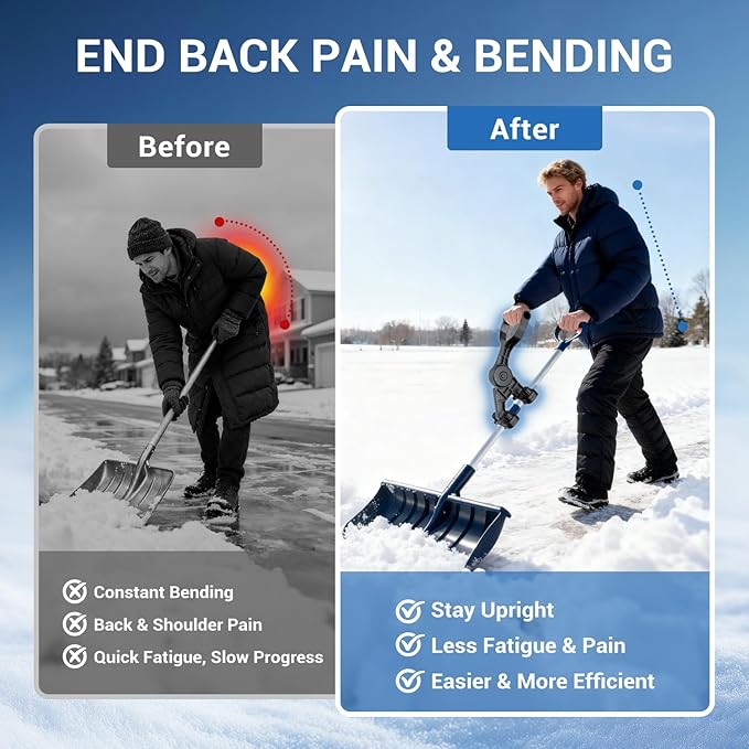 - ERGONOMIC BACK-SAVING DESIGN: Stand upright and shovel smarter! Coinicxcel back saving attachment helps keep your spine straight, reducing back pressure and pain during long snow-clearing sessions. The thick, comfortable grip allows you to maintain firm control and shovel efficiently without fatigue. It makes snow removal easier—not a workout.