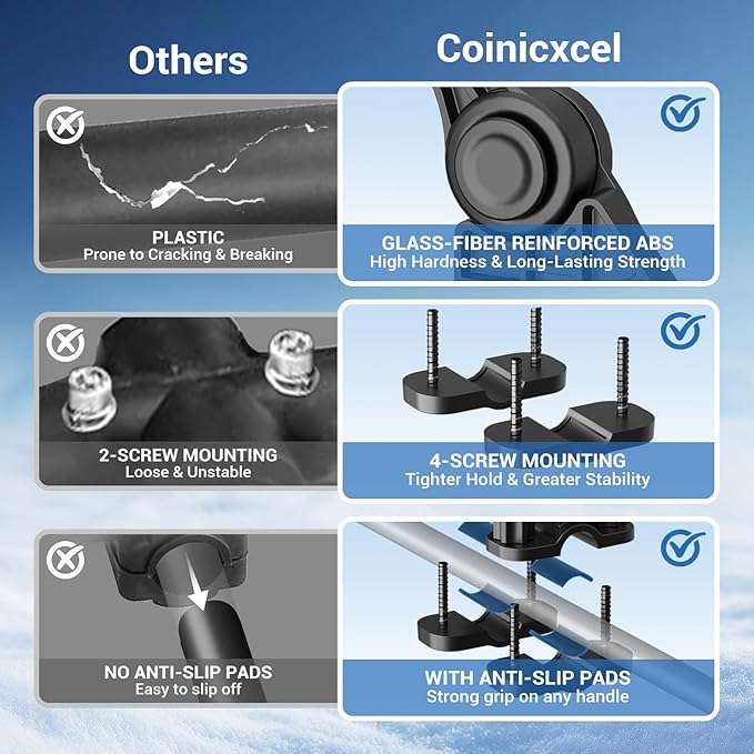 - STABLE & NON-SLIP GRIP: Experience unmatched stability with our 4-screw clamp system—more secure than flimsy 2-screw handle. Coinicxcel shovel handle grip also includes silicone anti-slip pads to prevent shifting or sliding on the shovel shaft—unlike others that easily loosen during use.