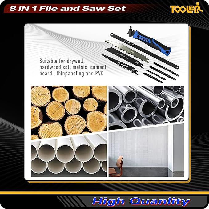 - [ High quality Blades ]- Include 8 different saw blades witch are made of high speed steel (HSS steel), be very resistant, sharpened tip and hardened blade for durability.