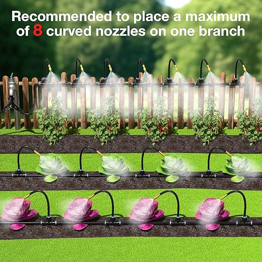 - 【Complete Kit with Support】- This 2025 upgraded irrigation kit contains 6 bending atomizing copper nozzles,6 three-way quick connectors. Should you have any questions,please contact us through Amazon or our support email for assistance.(No include 1/4 pipe, only 6pcs Adjustable Copper Nobbles and Quick Connectors)