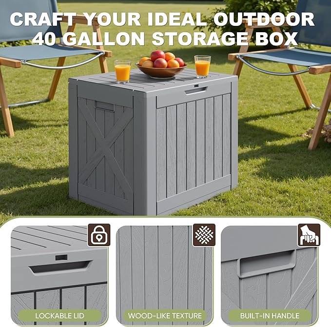 - Spacious 40-Gallon Capacity: With a 40-gallon storage space, Greesum outdoor resin storage box is perfect for organizing garden tools, outdoor equipment ,etc.Ideal for both household and commercial use.