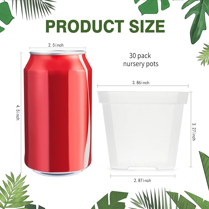 - 【What You Get】 30 pcs clear nursery pots (4 inch), each nursery pot features a 3.86 inch top diameter, 3.27 inch height, and 2.87 inch base diameter. (Note: Plants are not included.)