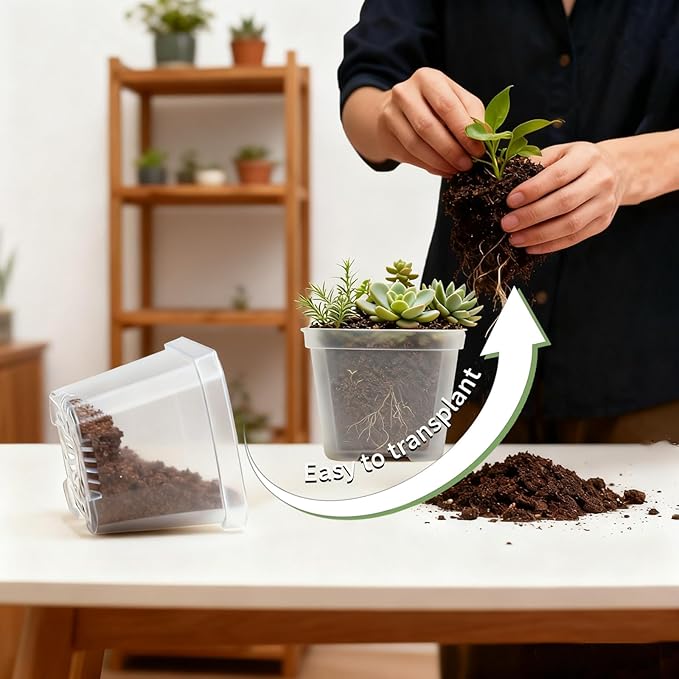 - 【Transparent Nursery Pots】 The transparent design of the plant pots allows you to observe the root system and soil moisture level, making it easy to monitor plant health and adjust your care regimen accordingly.