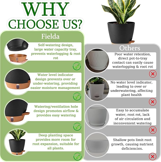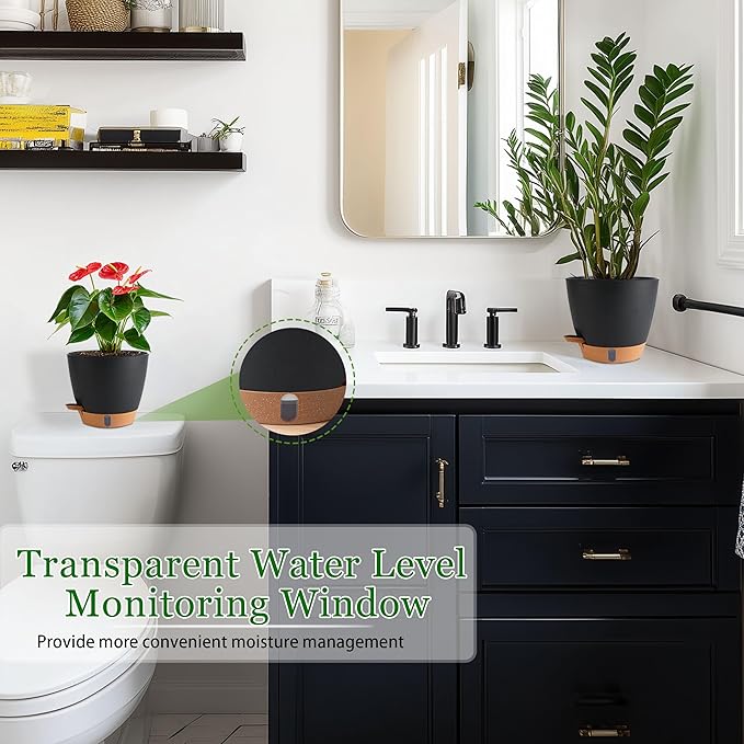 - 💧 【Visible Water Level for Perfect Hydration】 Each plant pot features a clear water level window on the tray. This allows you to monitor the reservoir at a glance, eliminating the guesswork of watering. From the small 6.5-inch planter pot to the large 10-inch garden pots, you can easily prevent over or underwatering for all your houseplant pots.