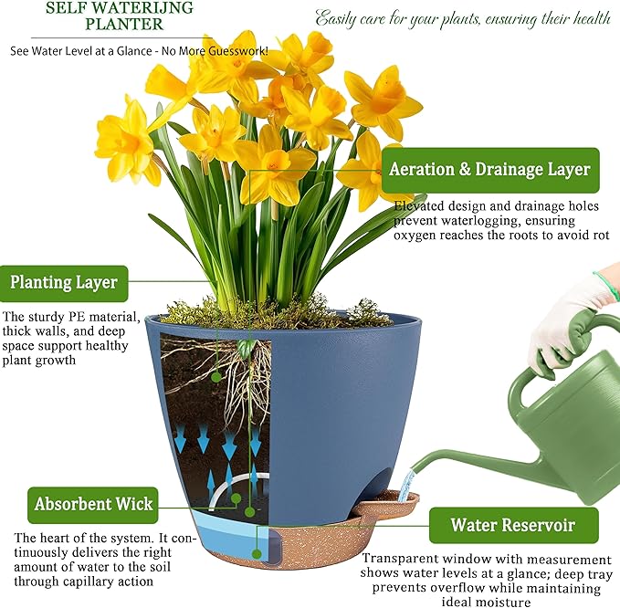 - 🎁 【Complete Set: Ideal Gift for Plant Enthusiasts】 This 5-pack of self-watering planter pots includes pots, trays, and labels—everything needed for easy plant care! Whether you're a beginner or expert, these plastic flower pots make the perfect gift. A complete value set of indoor pots for plants with drainage that brings joy and greenery to any space.