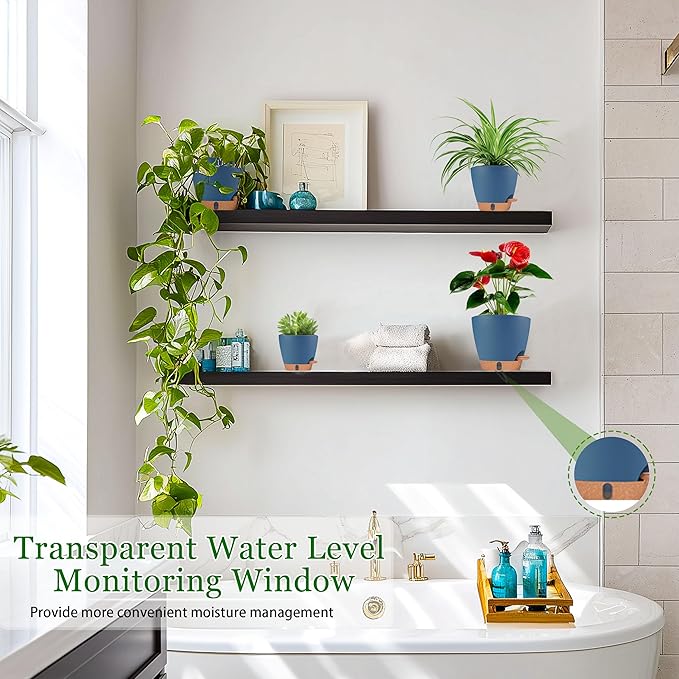- 🌿 【Self-Watering Planter Pots with Visual Indicator】 Never worry about watering again! These 8/7/6.5/6/5 Inch indoor plant pots with drainage feature a smart self-watering system that keeps soil perfectly moist for up to 7 days. The transparent water level window lets you monitor moisture at a glance—ideal for busy plant lovers or vacations. Perfect as decorative plant pots indoor, they work as reliable houseplant pots for herbs, succulents, and small flowers.