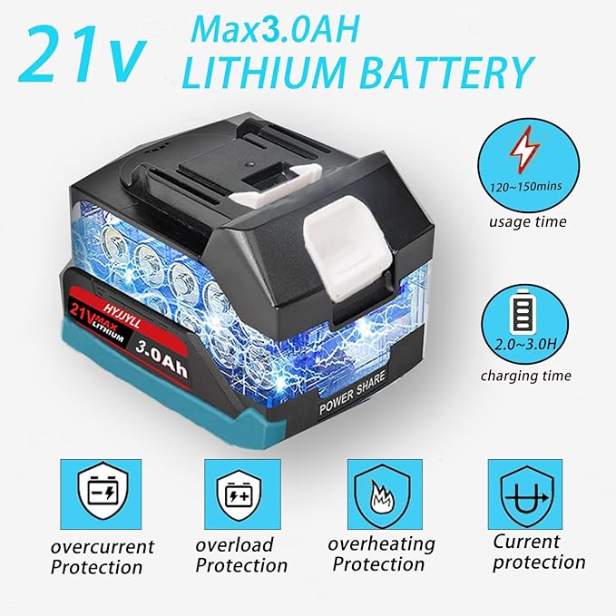 - ☘️【Fast-Charging Removable Battery】 Includes two interchangeable 21V 3000mAh lithium-ion batteries. A full charge takes just 2–3 hours, offering 60–90 minutes of runtime. Compatible with both the 8‑inch chainsaw and electric pruner, they provide strong, consistent power. Built‑in overload and temperature protection extends battery life and ensures safe operation.