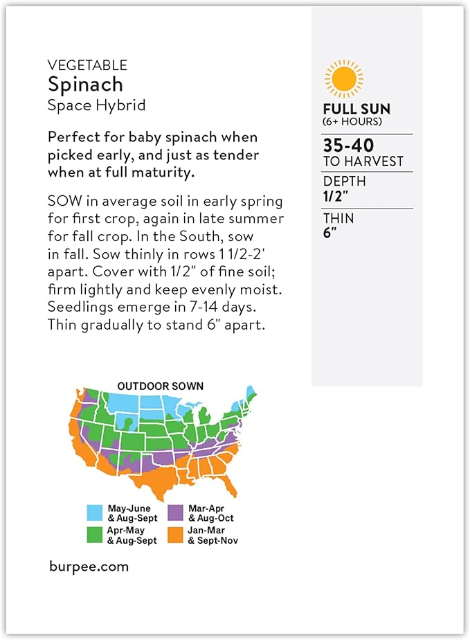 Burpee Space Hybrid Spinach Seeds - High-Yield, Disease-Resistant Variety