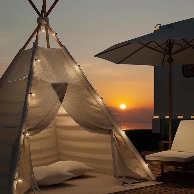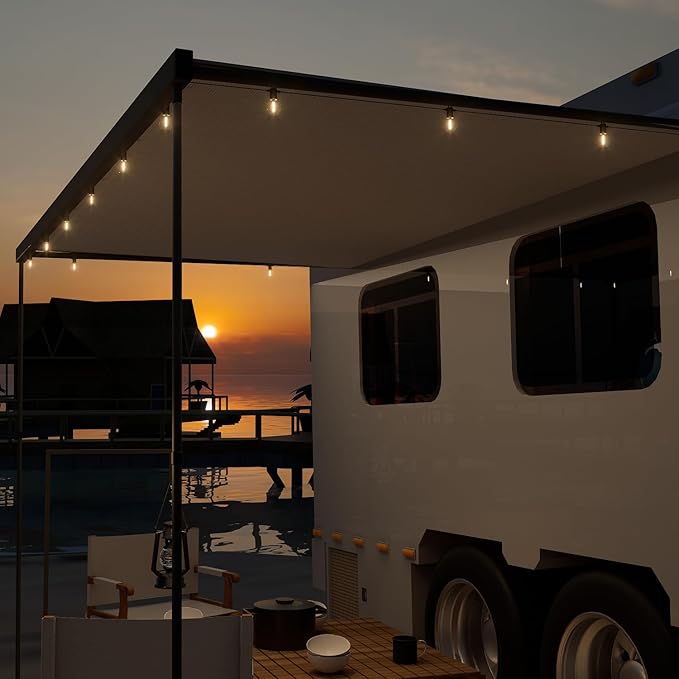 - 【Widely Used & Easy to Install 】These outdoor string lights suitable for Indoor Outdoor ,built-in hanging ring above each socket, making it easy to hang from the roof in minutes.Perfect use as bistro lights,cafe lights,circus lights,party lights,camping string lights,tent lights,canopy lights and porch string lights.