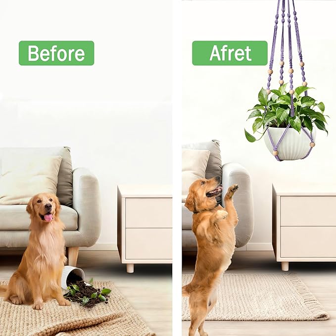 - Easy To Hang In Any Space: Simply spread the four cords and place your plant pot in the center to hang from a ceiling hook or wall bracket; It also lets to keep your plants out of your pet's reach or as a convenient space saver