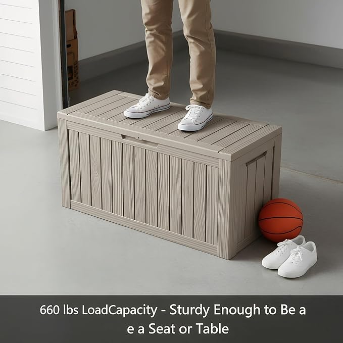 - All-Weather Durability & Fade Resistance: Crafted from robust wood-grain resin, this storage box resists rain, wind, UV rays, and temperature changes. It won’t warp, crack, or fade—so it stays looking new with almost no maintenance.