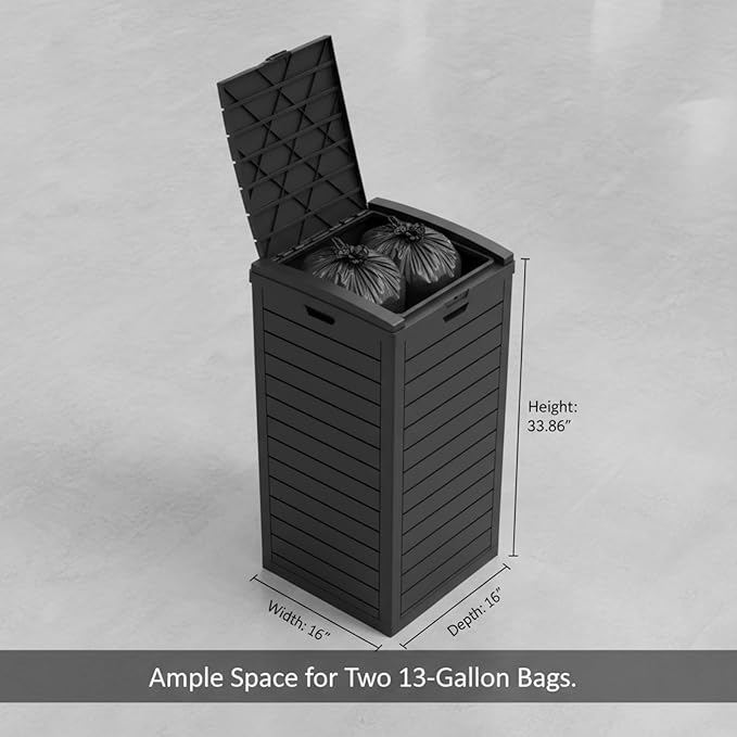- Ample 31-Gallon Capacity: Designed to accommodate 33–40 gallon standard trash bags (approx. 43–47" long x 28–30" wide), this spacious trash bin efficiently handles household and outdoor waste—ideal for kitchens, patios, garages, and backyard gatherings.