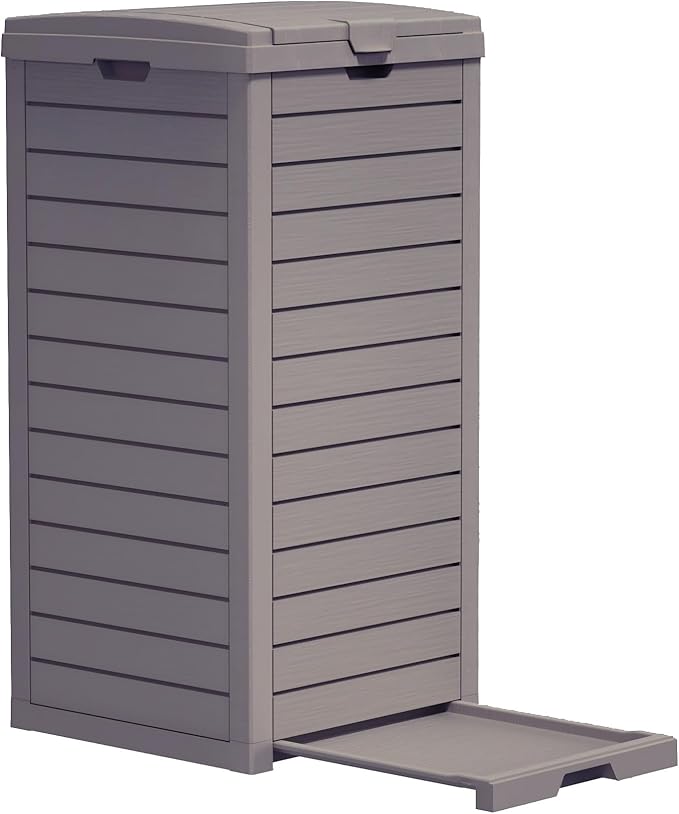 - Durable & Weather-Resistant Resin Build: Constructed from high-strength, recyclable resin, this garbage cabinet resists water, UV rays, and fading. It stays sturdy through heat, rain, and snow, without bending, cracking, or warping.