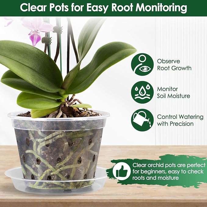 - 【5 Sizes for Every Growth Stage】 This clear orchid pots set includes 12 plastic orchid pots with holes in 5 sizes (3, 4, 5,6,7), making it easy to repot orchids at any growth stage—from young seedlings to fully grown plants. Ideal for both transplanting and long-term orchid care