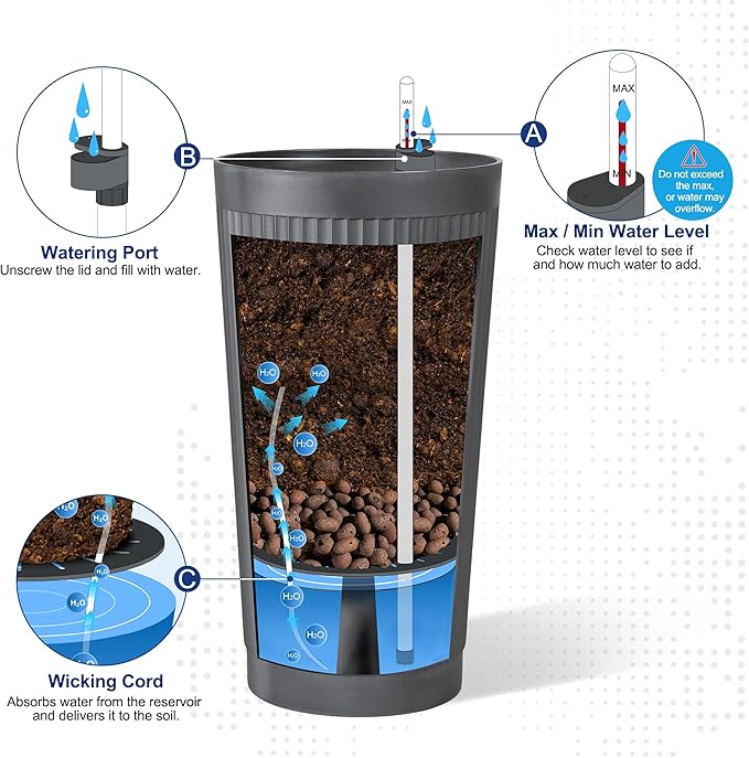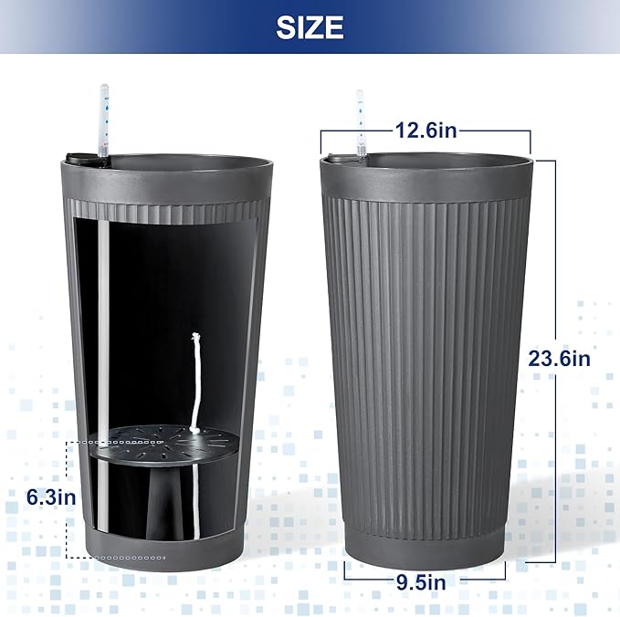 - Clear Water Level Indicator: The easy-to-read water gauge helps prevent overwatering and underwatering by showing exactly when to refill. Ideal for anyone wanting low-maintenance outdoor flower pots or indoor greenery.