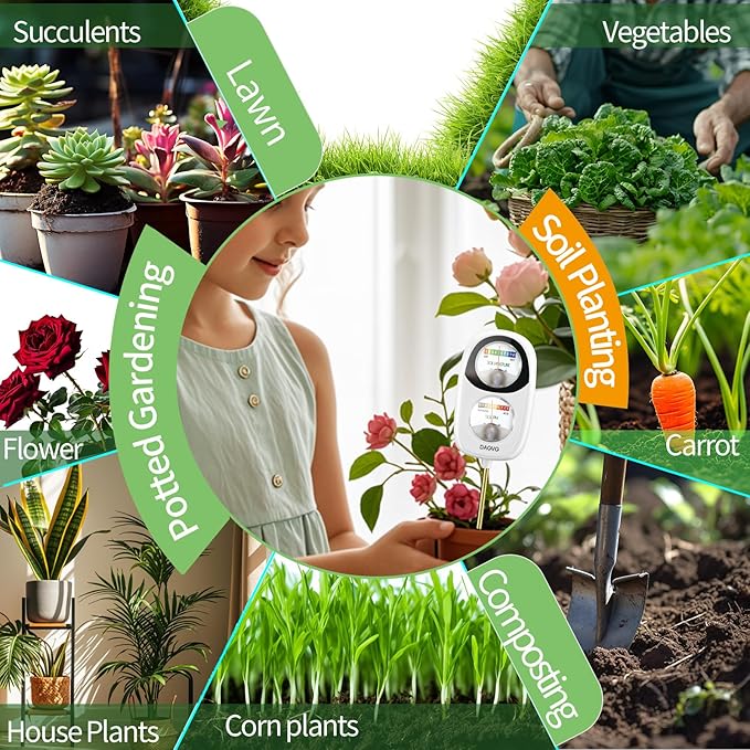 - 2-IN-1 SOIL TEST KIT: Soil PH Tester&Soil Moisture Meter helps gardeners make sensible decisions to optimal the plant‘s growth, increase effective watering rates, and no longer worry about overwatering. Enhance your gardening experience to the next level